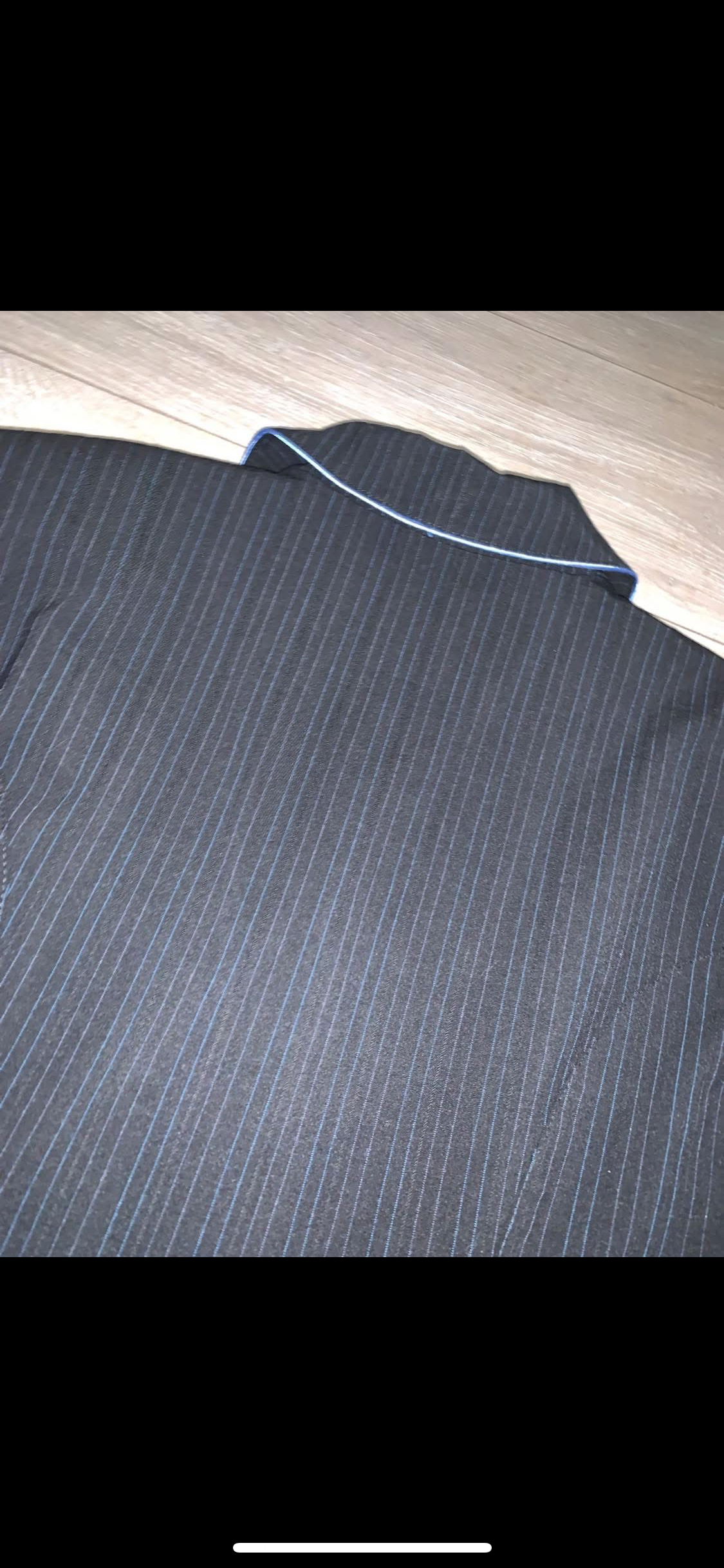 Gorgeous black & blue pinstripe jumper-lined show jacket made from soft, stretchy material for the perfect fit. Ideal for comfort and elegance in the ring. In excellent condition!