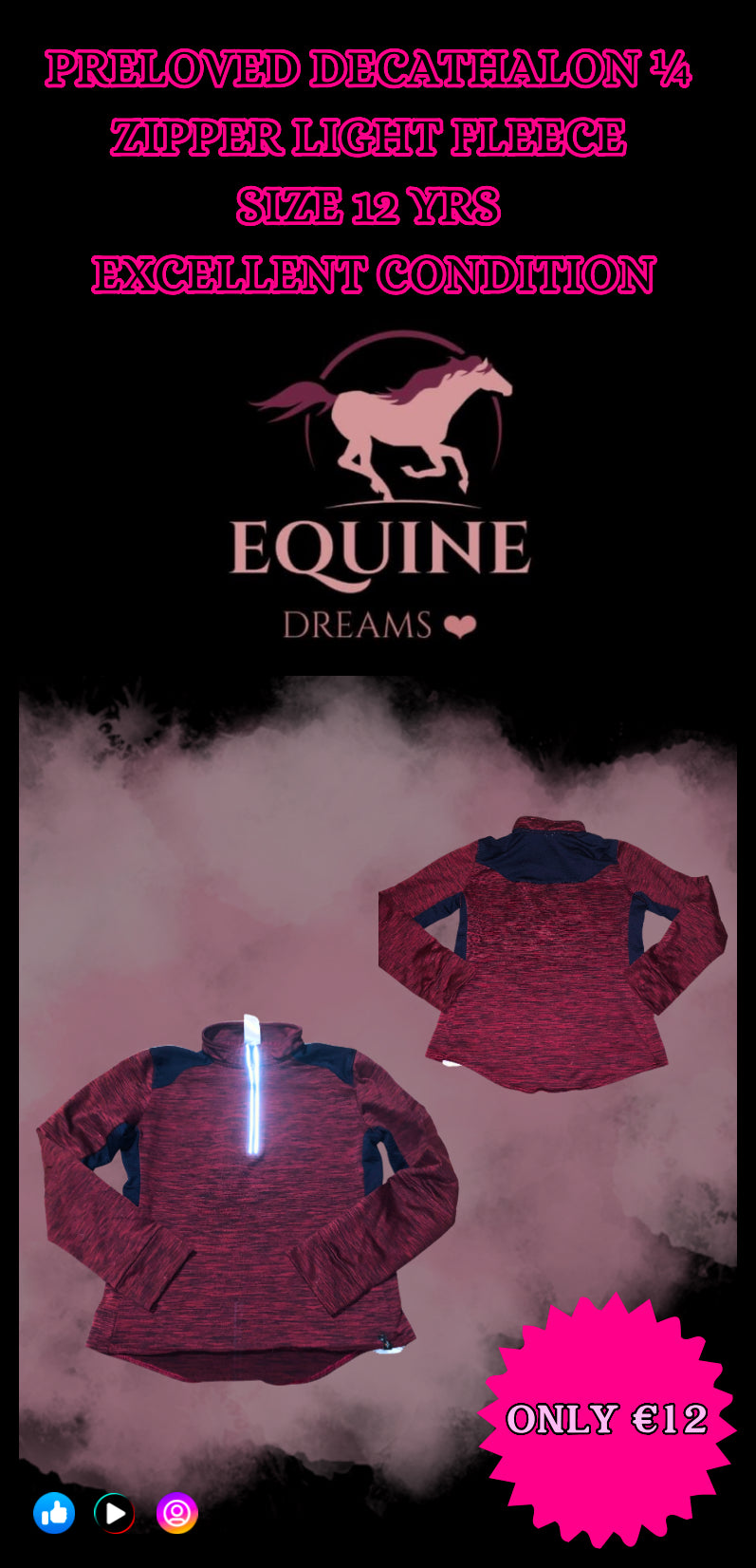 This lightweight 1/4 zip fleece is perfect for layering during cooler days at the yard or everyday wear. In excellent condition and super cosy for young riders!