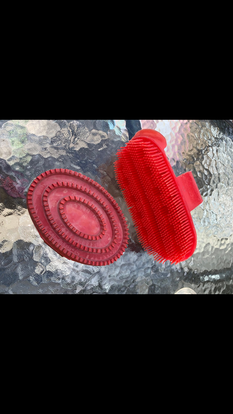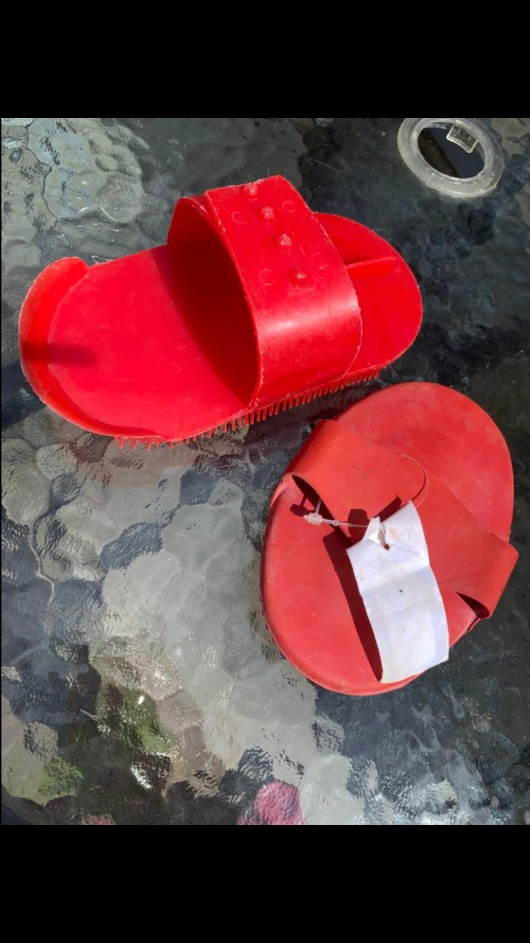 Adult-sized red grooming bundle in good condition – perfect for daily horse care.