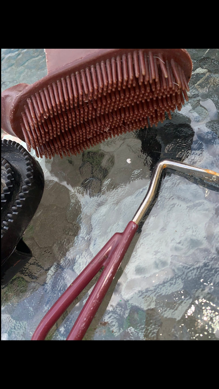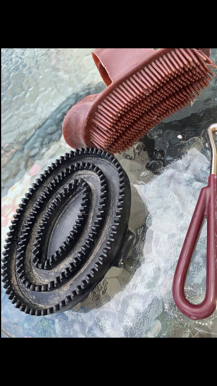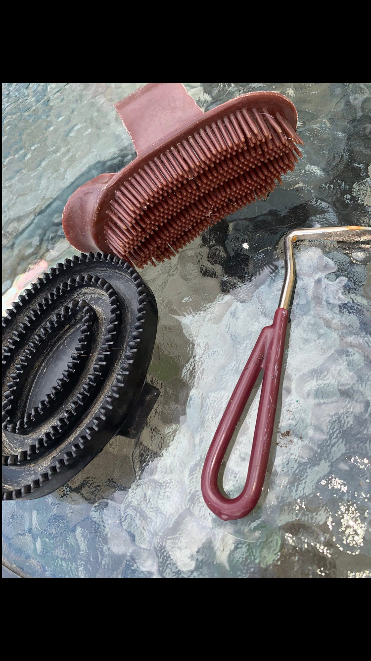 Compact kids grooming bundle in brown – used but in good condition, ideal for young riders to keep their pony looking smart.