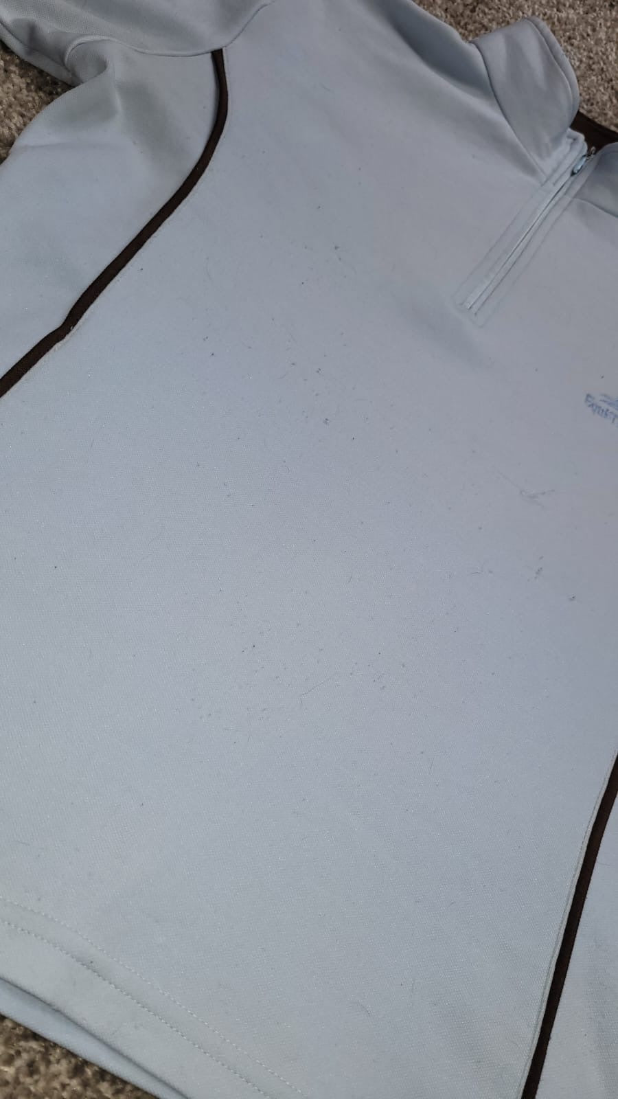 A lovely lightweight EquiTheme riding top with a stylish fit. Tag reads size large, but it fits more like a UK 8/10. Some light signs of wear but still in good condition and perfect for everyday use!