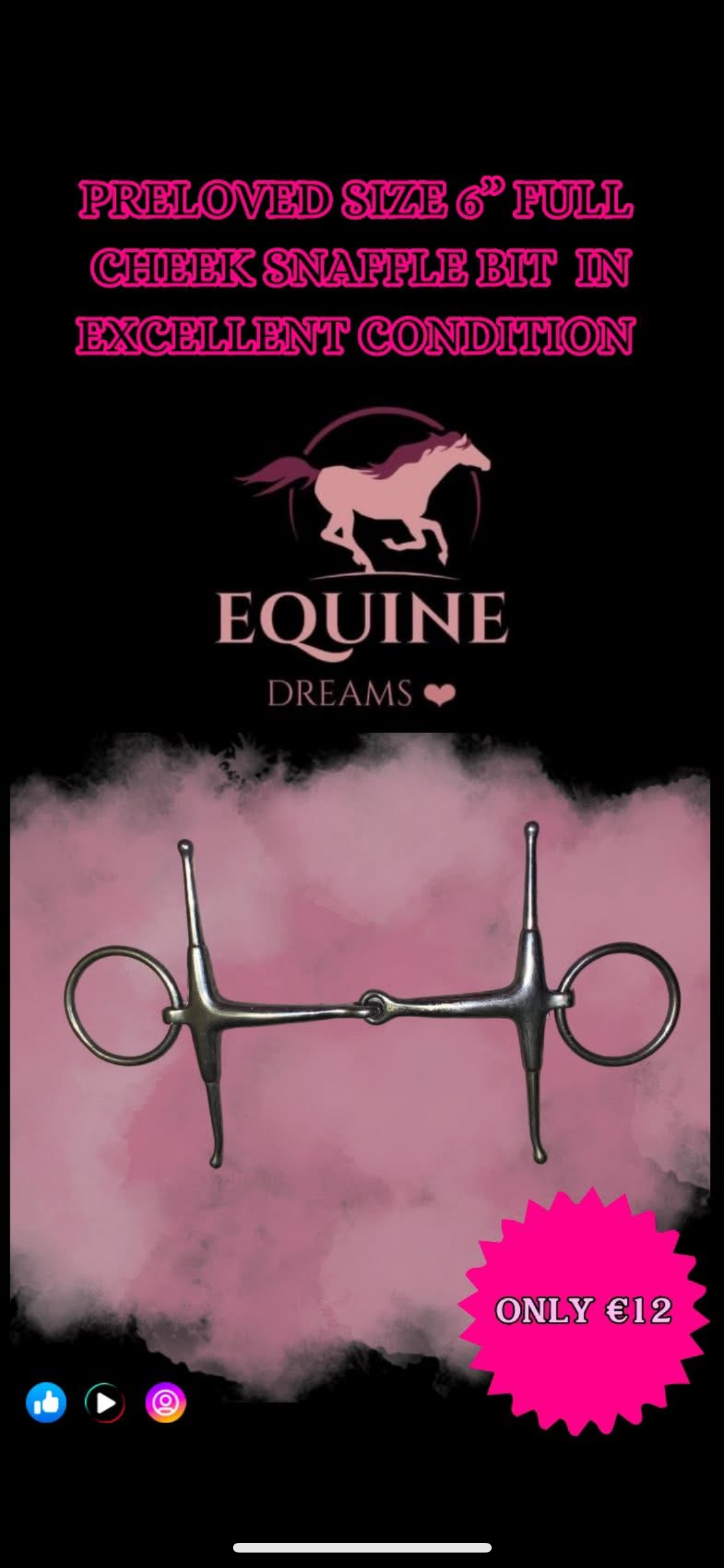 Classic full cheek snaffle bit, size 6โ. In excellent condition โ ready for use and a real bargain!