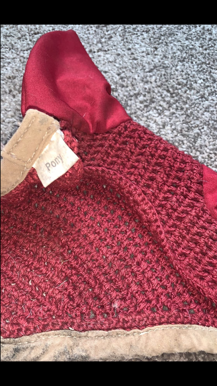 Elegant wine-coloured Equitheme ear bonnet, perfect for keeping flies away and adding a stylish touch to your pony’s look. In good condition and ready for use.
