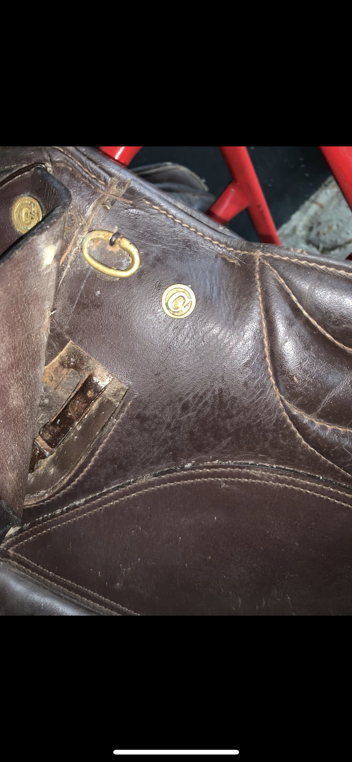 A 14โ brown synthetic pony saddle, measuring 7โ d-d. Some lost stitching on one side (shown in photos), but otherwise in good condition โ a great bargain at just โฌ50!
