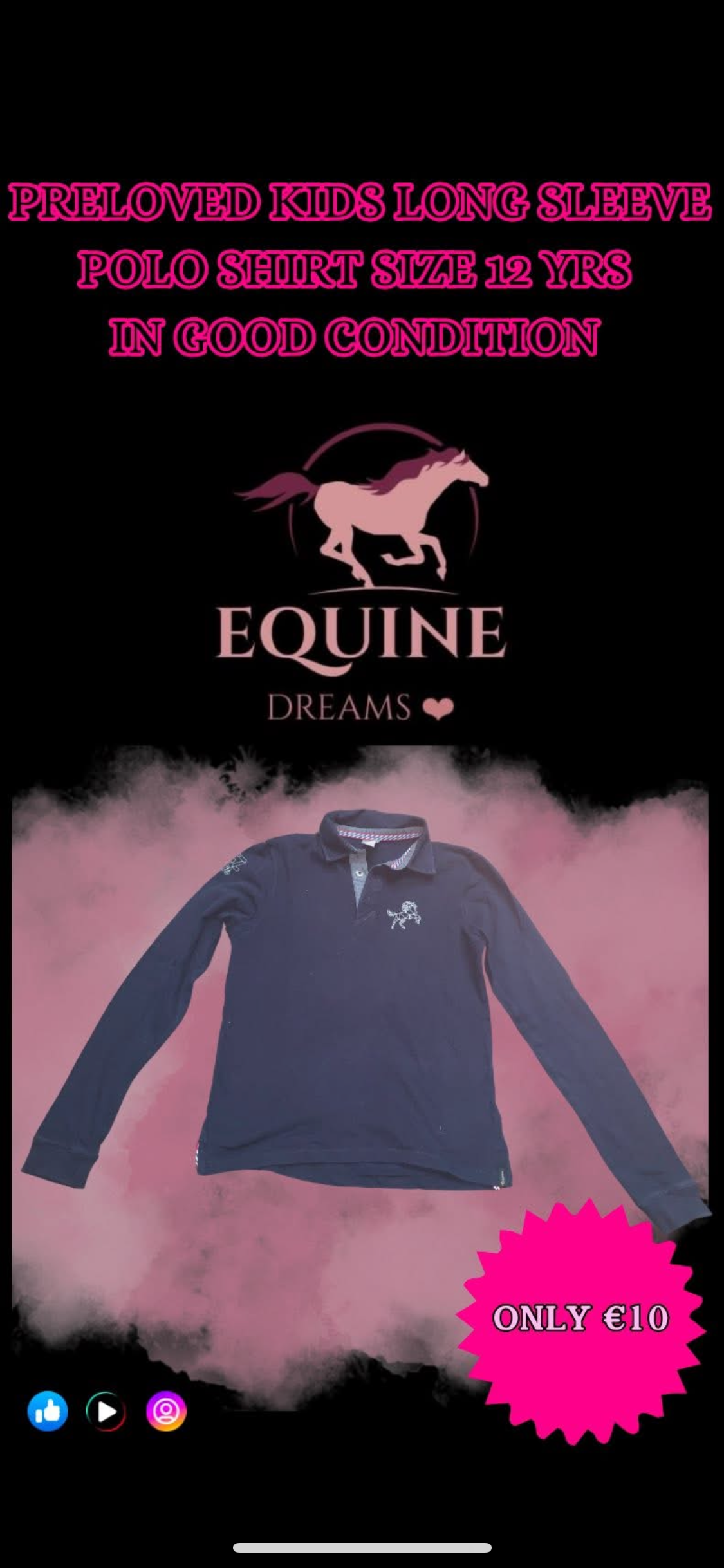 Smart and comfy long sleeve polo shirt in size 12 years, perfect for riding or casual wear. In good condition and ready for a new home.