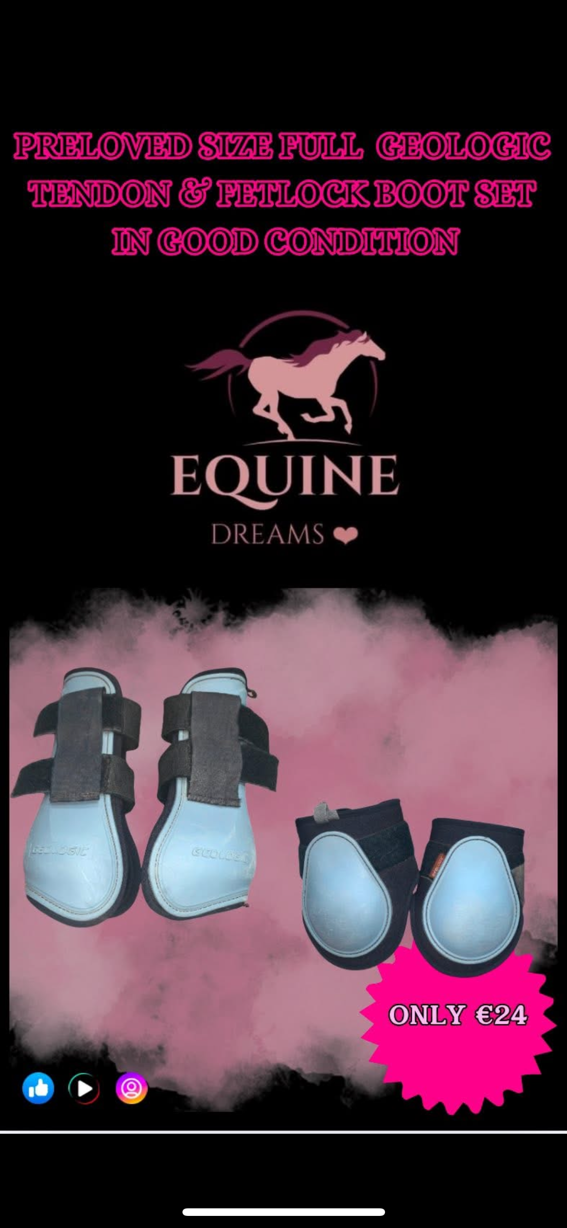 Quality protective boots from Geologic โ this matching set includes both tendon and fetlock boots. Preloved but in good condition, ready to go straight into use!