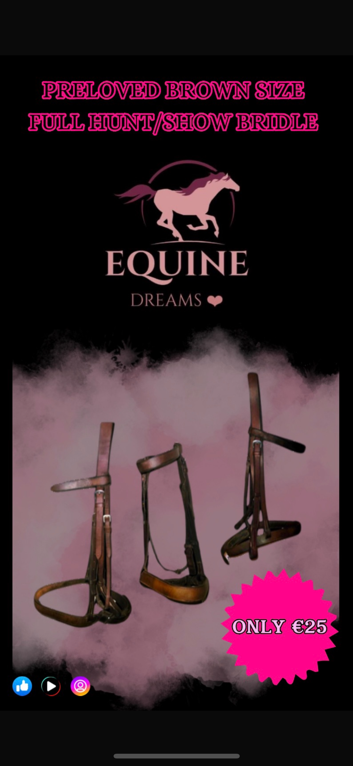 ๐ค Preloved Brown Size Full Soft Leather Hunting Bridle ๐ค