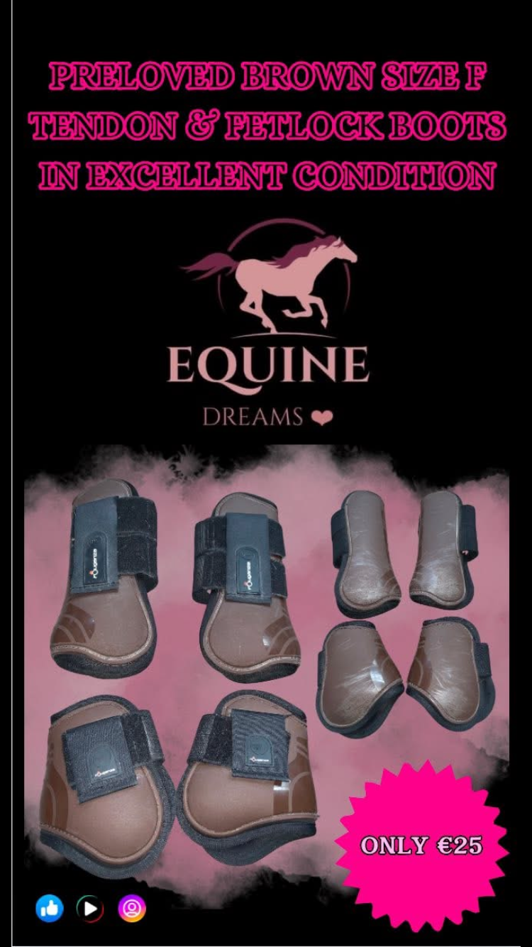 Complete matching set of brown tendon & fetlock boots, size full, in excellent condition – stylish, durable, and perfect for competition or everyday schooling.