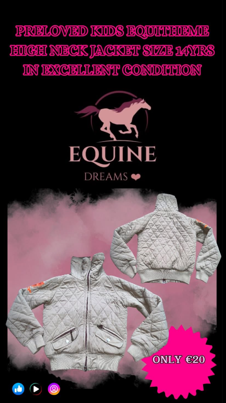 Stylish EquiTheme high neck jacket in slim fit size 14yrs โ perfect for keeping warm while riding or at the yard. Excellent condition and ready for its next rider!