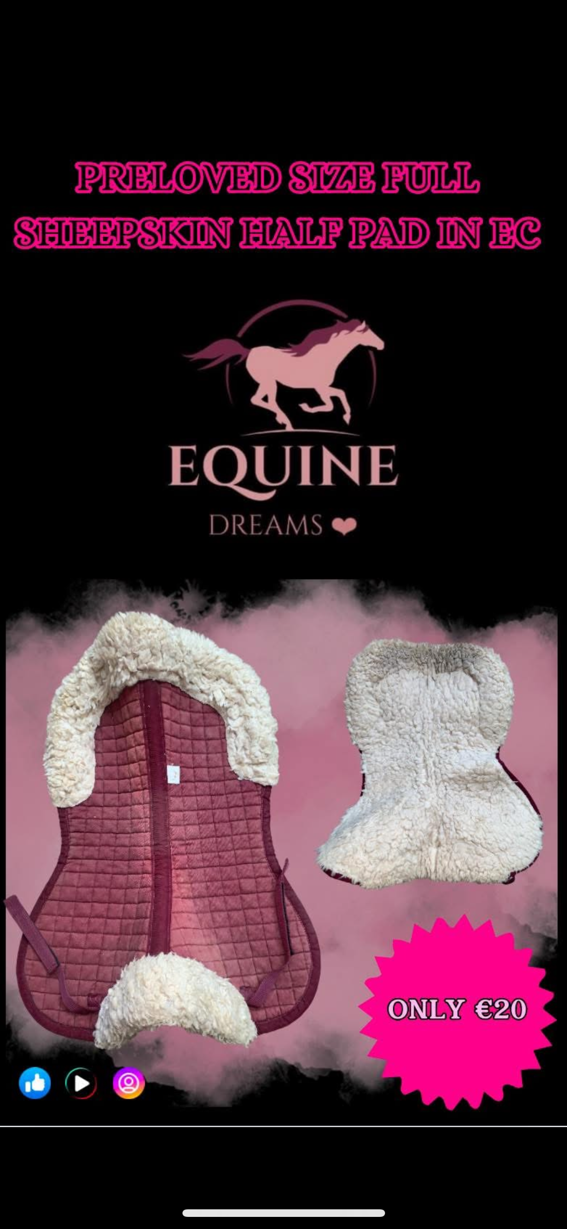 🔖 #SheepskinHalfPad #EquestrianTack #EquestrianStyle #EquineDreams #PrelovedEquestrian #IrishEquestrian #SaddlePadLove #HorseRiderStyle